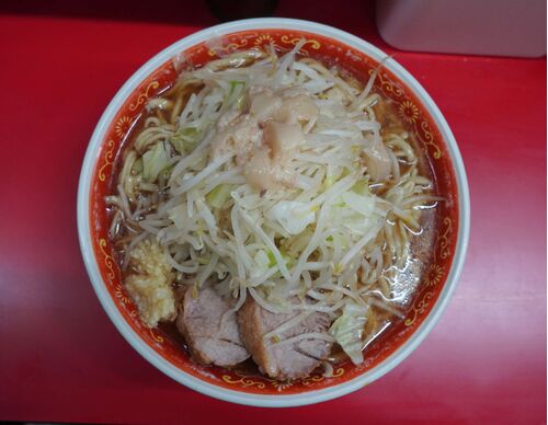 21:29 何と待ちなし。店内空席2。 嬉しすぎる。 すぐに入店して食券購入。大ラーメン。 大将側、一番奥の席。 油抜き 薄味 カタメ申請。 待機していると、製麺助手さんの元に、重鎮常連さんが今から向かうとLINE報告の模様。彼の殿堂入りが柔らかめと言う事…
